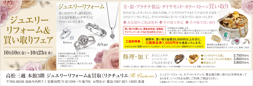 <リクチュリエ> ジュエリーリフォーム&買取 高松三越 本館3階