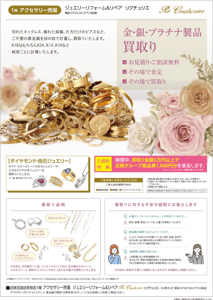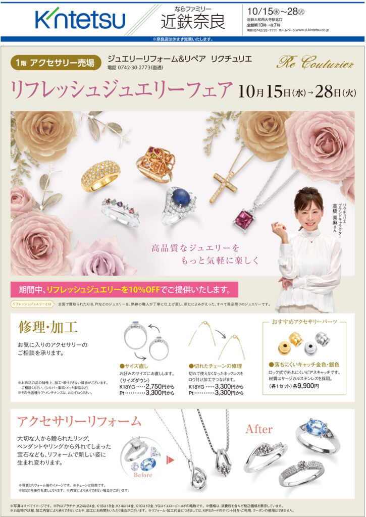<リクチュリエ> ジュエリーリフォーム&リペア 近鉄百貨店奈良店 1階