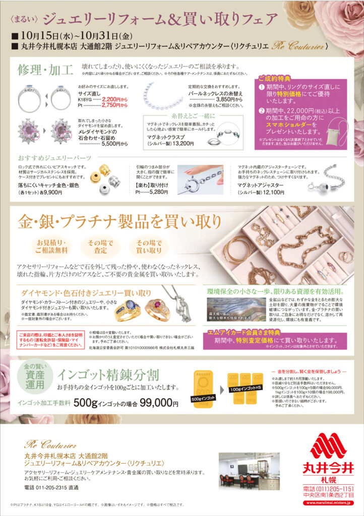 <リクチュリエ> ジュエリーリフォーム&リペアカウンター 丸井今井札幌本店 大通館2階