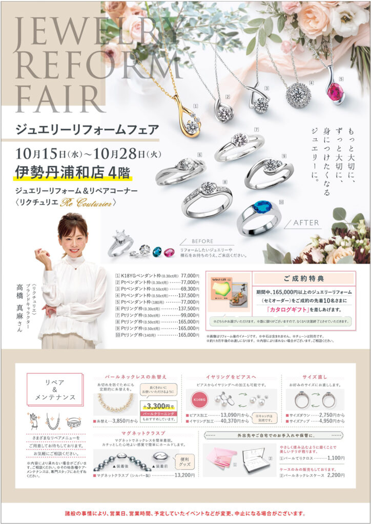 <リクチュリエ> ジュエリーリフォーム&リペアコーナー 伊勢丹浦和店 4階