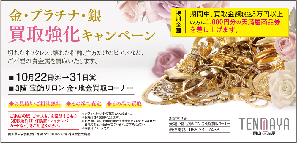 <金・地金買取コーナー> 岡山天満屋 3階 宝飾サロン
