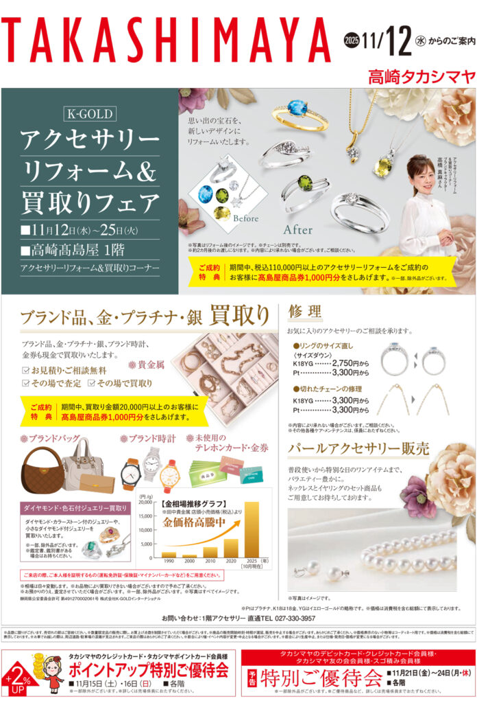 <K-GOLD> アクセサリーリフォーム&買取りコーナー 高崎髙島屋店 1階