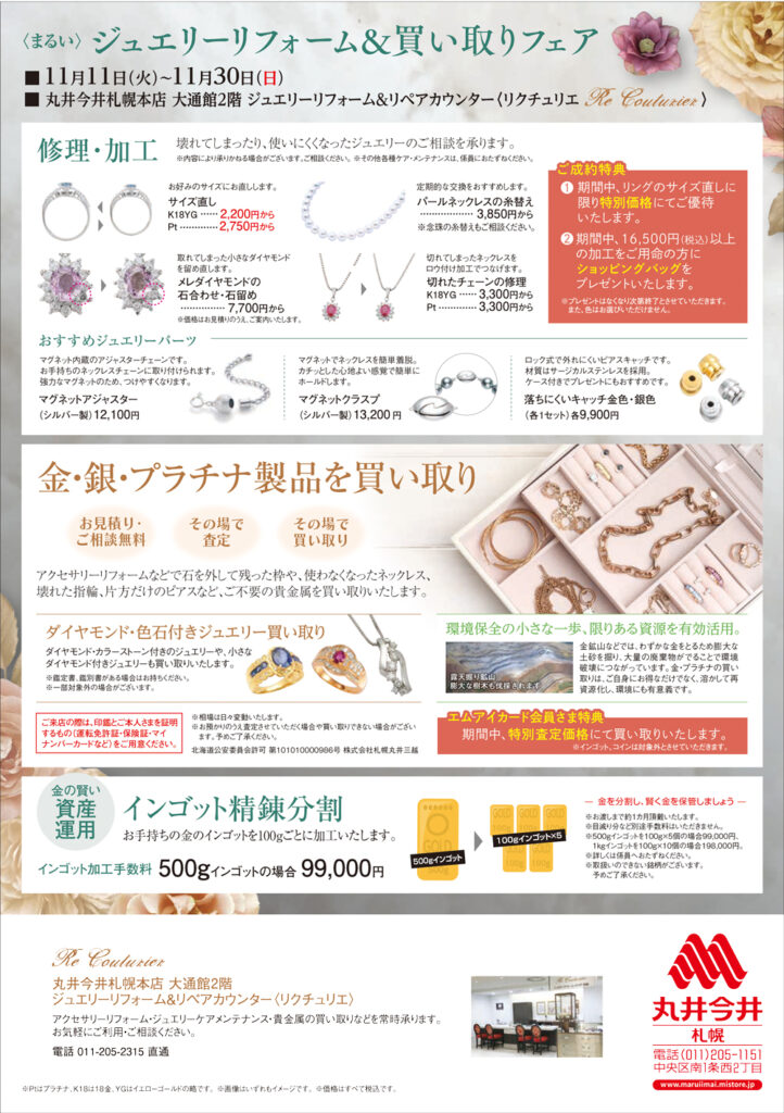<リクチュリエ> ジュエリーリフォーム&リペアカウンター 丸井今井札幌本店 大通館2階
