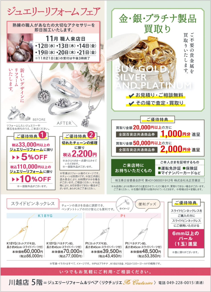 <リクチュリエ> ジュエリーリフォーム&リペア まるひろ川越店 5階