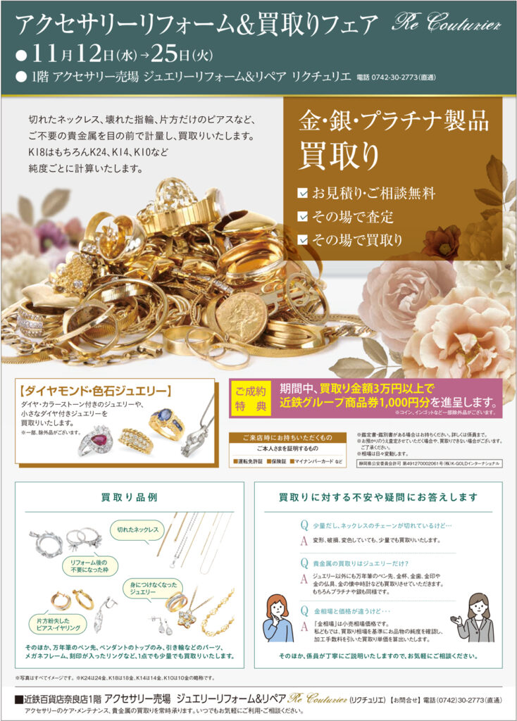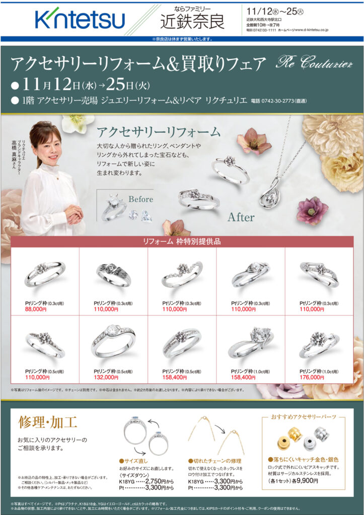 <リクチュリエ> ジュエリーリフォーム&リペア 近鉄奈良 1階