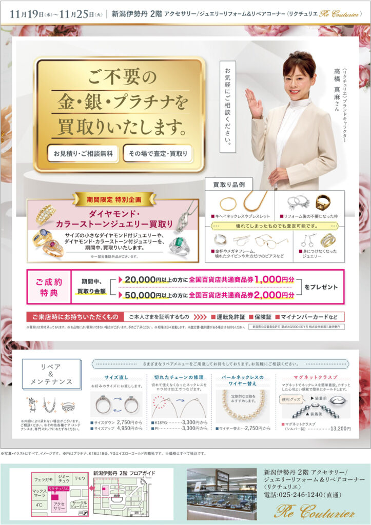 <リクチュリエ> ジュエリーリフォーム&リペアコーナー 新潟伊勢丹 2階