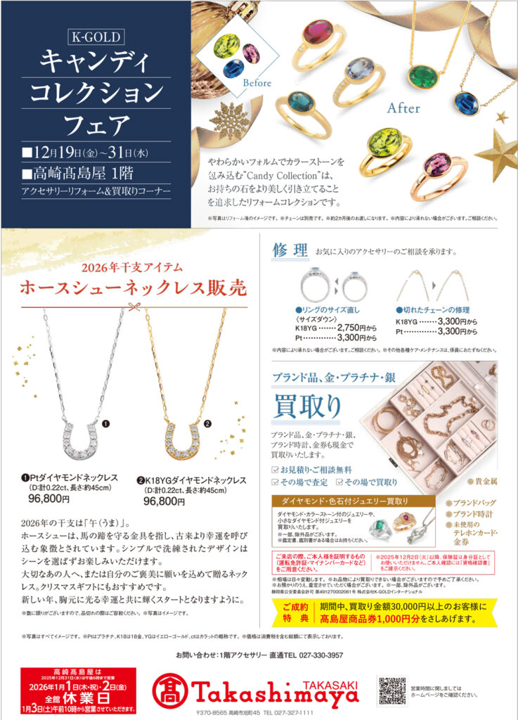<K-GOLD> アクセサリーリフォーム&買取りコーナー 高崎髙島屋 1階