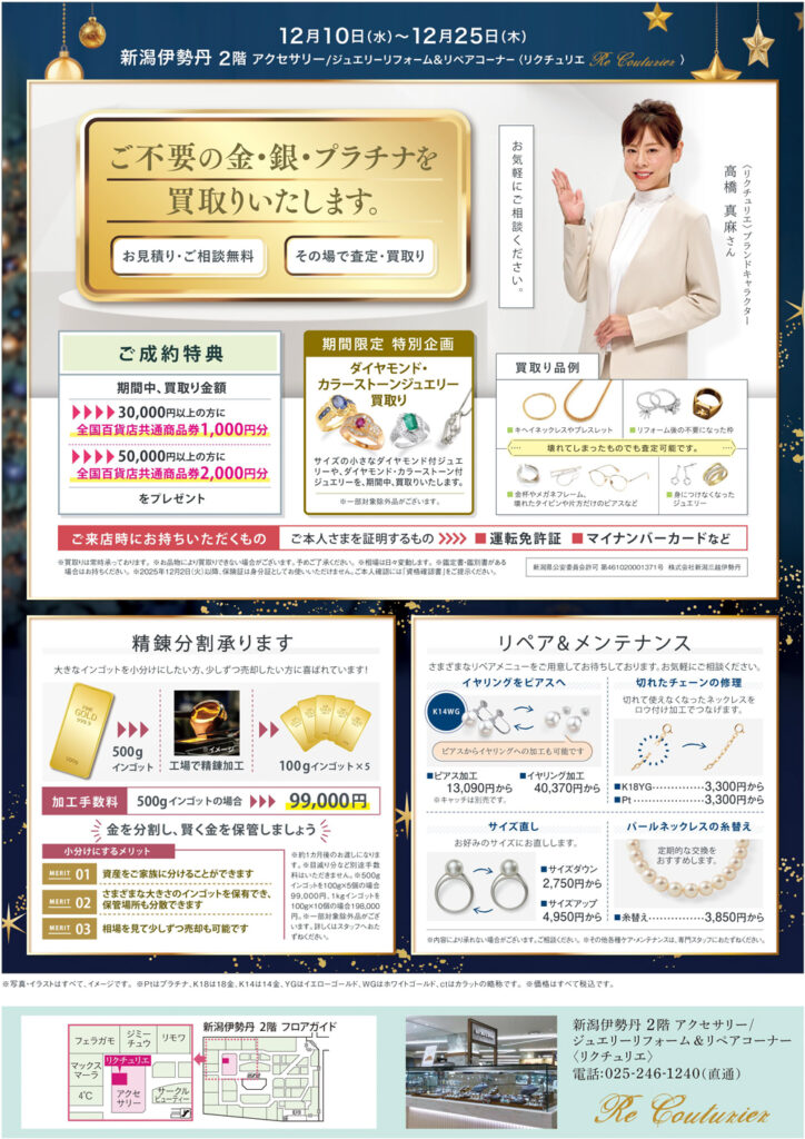<リクチュリエ> ジュエリーリフォーム&リペアコーナー 新潟伊勢丹 2階