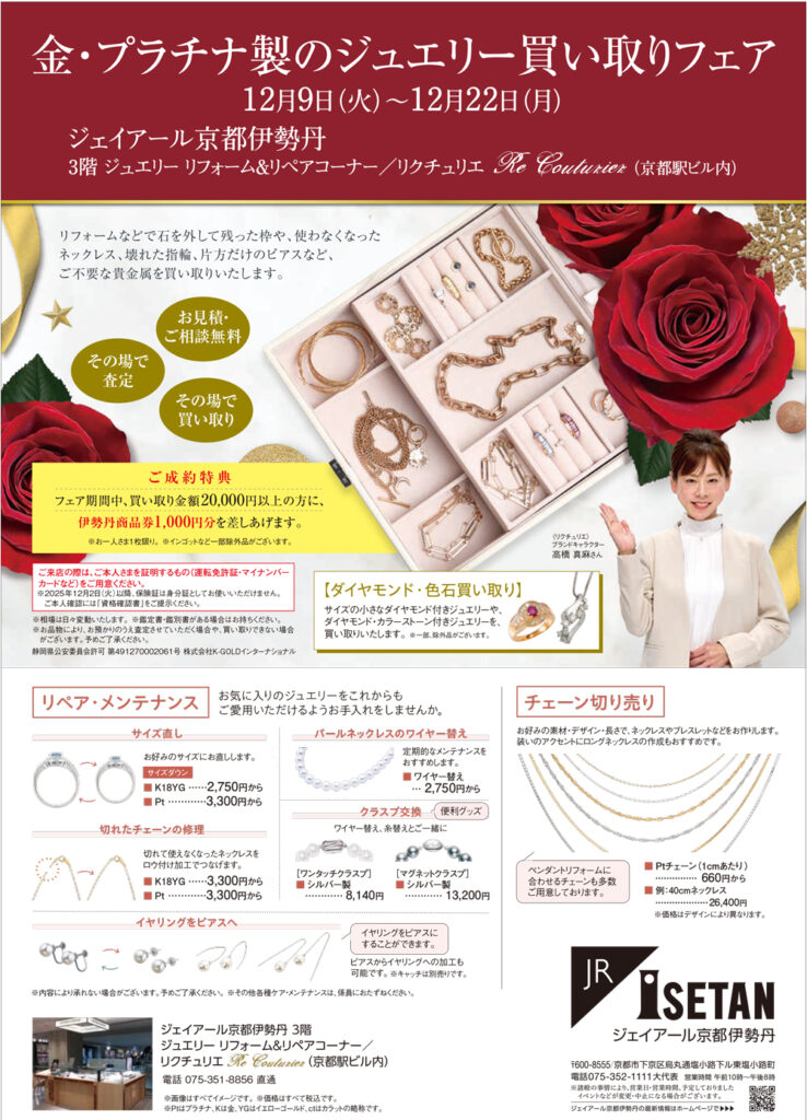 <リクチュリエ> ジュエリーリフォーム&リペアコーナー ジェイアール京都伊勢丹 3階
