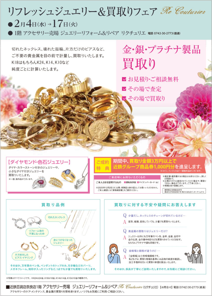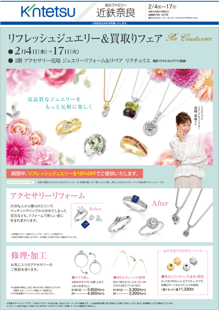 <リクチュリエ> ジュエリーリフォーム&リペア 近鉄百貨店 奈良店 1階