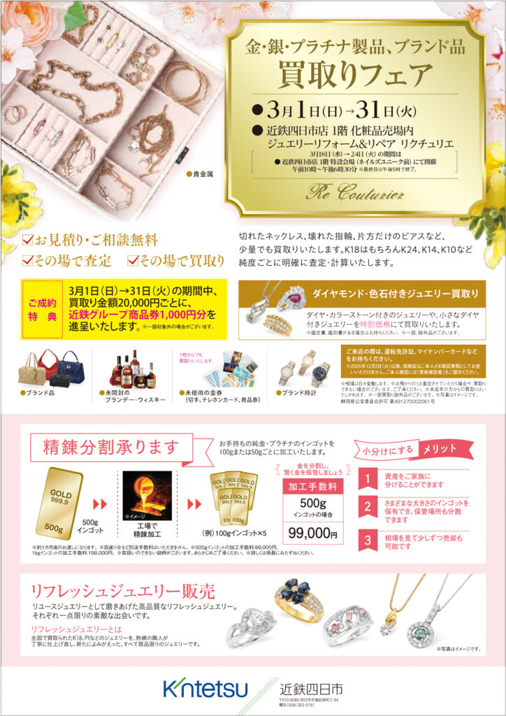 ●金・銀・プラチナ製品、ブランド品 買取りフェア