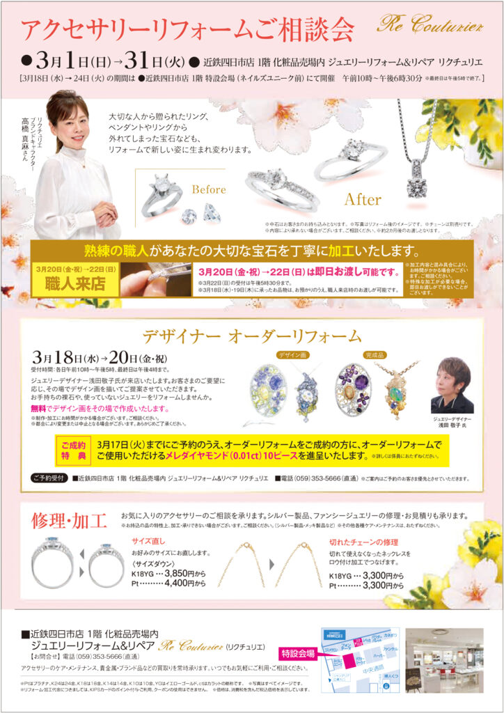 <リクチュリエ> ジュエリーリフォーム&リペア 近鉄四日市店 1階