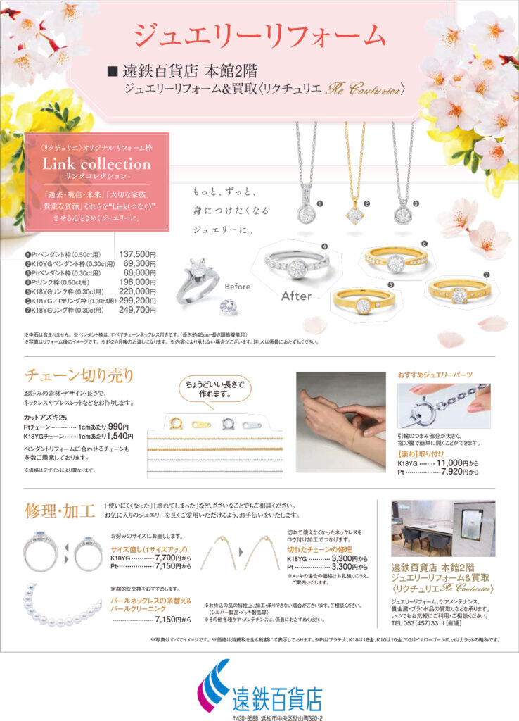 <リクチュリエ> ジュエリーリフォーム&買取 遠鉄百貨店 本館2階