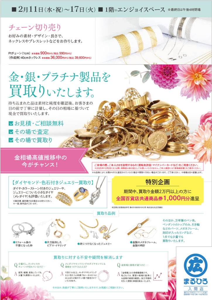期間中、買取り金額2万円以上の方に「全国百貨店共通商品券1,000円分」進呈