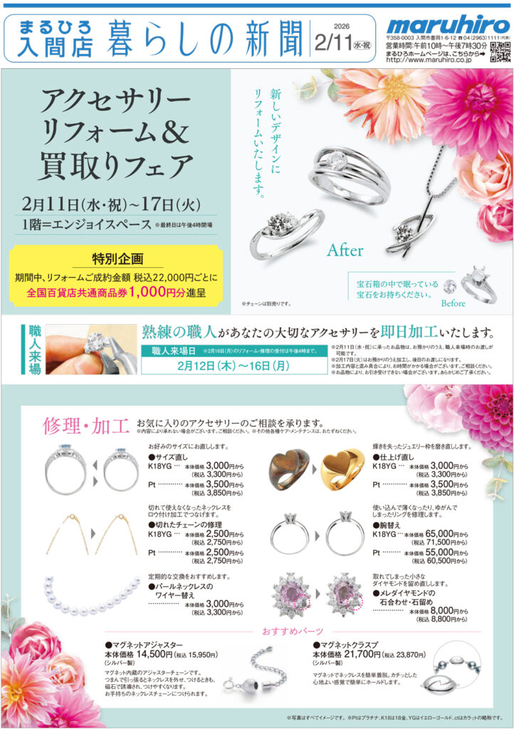 ※2月11日(水・祝)に承ったお品物は、お預かりのうえ、職人来場時のお渡しが可能です。