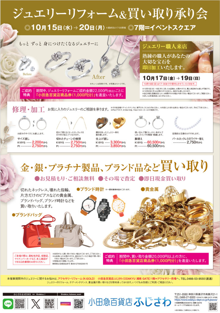 期間中、買い取り金額20,000円以上の方に、「小田急百貨店商品券(1,000円分)」を進呈いたします。
