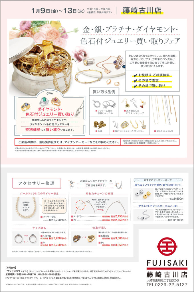| 開催場所 | 藤崎古川店 〒989-6117 宮城県大崎市古川旭2丁目3-6 |