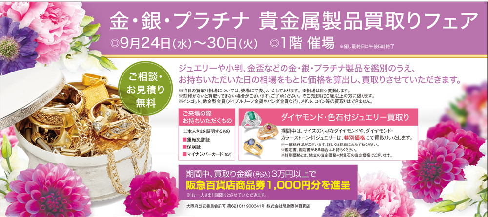 期間中、買取り金額(税込)3万円以上で、阪急百貨店商品券1,000円分を進呈