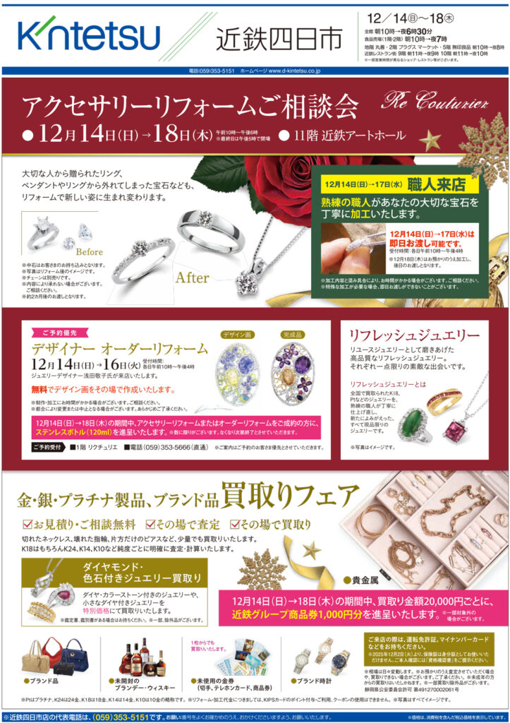ジュエリー職人来店→ 12月14日(日)~17日(水)